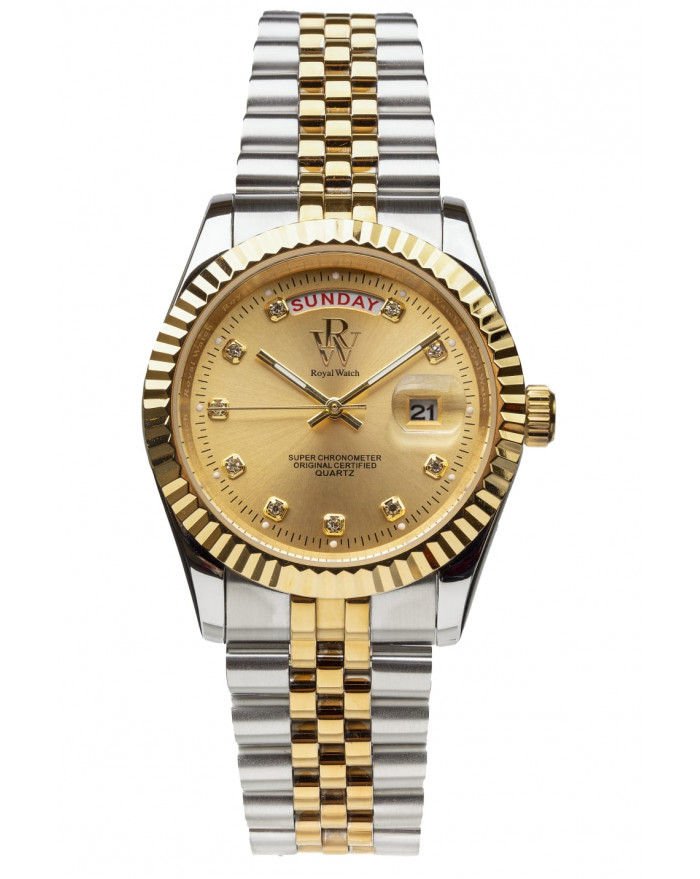 Caratterizzato da un lussuoso bracciale metallico a maglie e da un quadrante gold