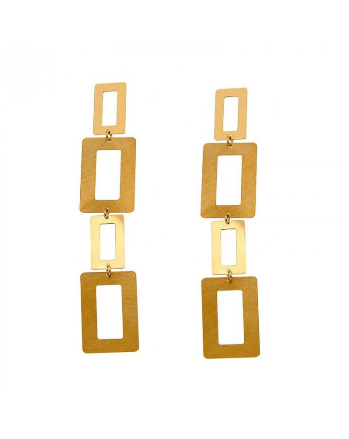 Orecchini lunghi con rettangoli tagliati su foglio d'argento 925‰ placcato oro giallo 23 ct lucidati a specchio e satinati a mano